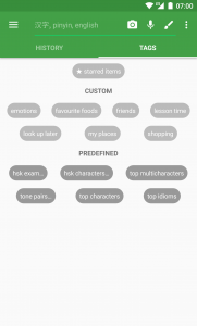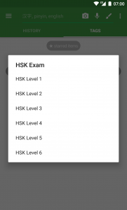 - Added “hsk characters” tags so that you can study (perhaps using homescreen widget) characters for any given HSK level