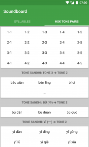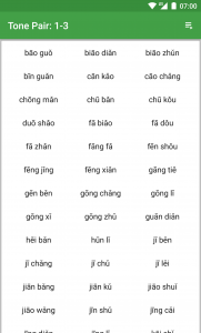 Hanping Chinese Dictionary Pro additionally includes the ability (HSK Tone Pairs tab) to hear two-syllable sounds from HSK level 1 to 5. Note: if you have purchased the HSK (2 to 5) add-on, all tone-pairs are available, otherwise only the tone pairs in HSK 1 are available. This is not available for the Hanping Cantonese Dictionary app (or Hanping Chinese Dictionary Lite app).