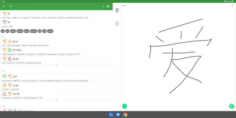 - Handwriting and radicals panes, now allow you to see results without having to close it each time. Especially useful in landscape or on a tablet