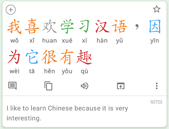 The translation will then appear like any other note: